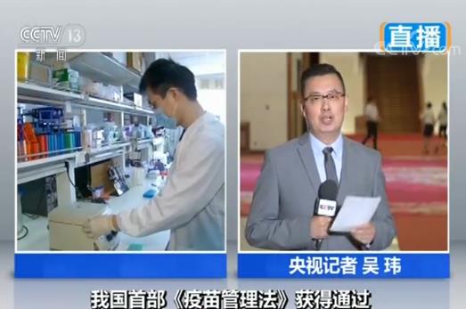 央視網消息:十三屆全國人大常委會 第十一次會議 今天下午舉行閉幕會,表決了有關事項。就在剛才,會議表決通過了《疫苗管理法》。