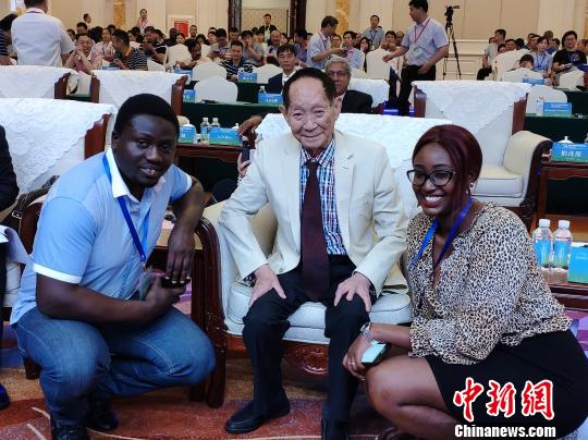 在中非經(jīng)貿(mào)博覽會期間舉行的一場論壇上,非洲各國專家學(xué)者代表爭相與袁隆平合影留念。 王昊昊 攝
