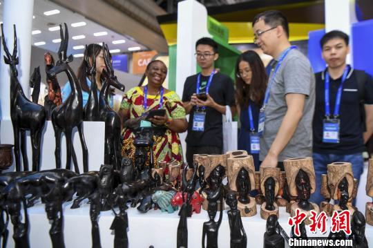 首屆中非經(jīng)貿(mào)博覽會上,各種造型的非洲手工藝品吸引參觀者駐足。 楊華峰 攝