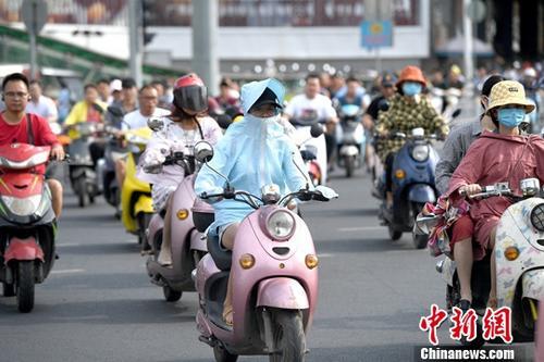 資料圖:市民“全副武裝”遮陽出行。中新社記者 俞靖 攝