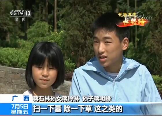 蔣石林孫女蔣玲琳 孫子蔣明峰:從四五歲開始,放假的時(shí)候,爺爺奶奶會(huì)帶著我們過來掃墓,除草,鼓勵(lì)我們一直做下去。