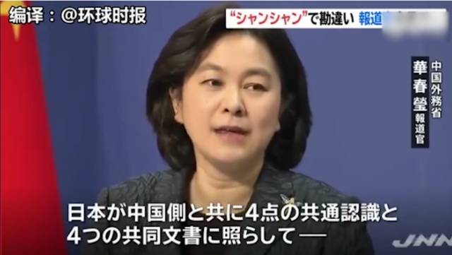 因為發(fā)音問題,華春瑩把“香香”聽成了日本外務省事務次官“杉山”,嚴肅地回答道:“我們希望日方與中方能夠相向而行,按照中日之間的四點原則共識和四個聯(lián)合的文件,來妥善處理好有關的問題。”