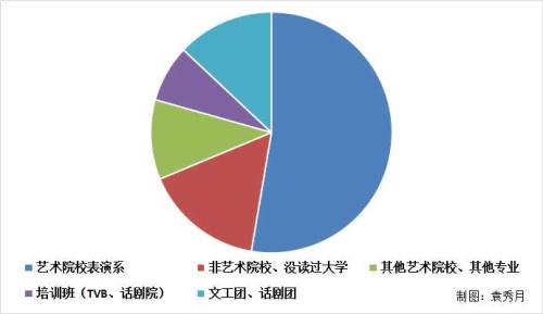 從其他藝校或其他專業(yè)畢業(yè)的有14位,如周迅學(xué)的民族舞,黃渤學(xué)的配音,馬思純學(xué)的播音。