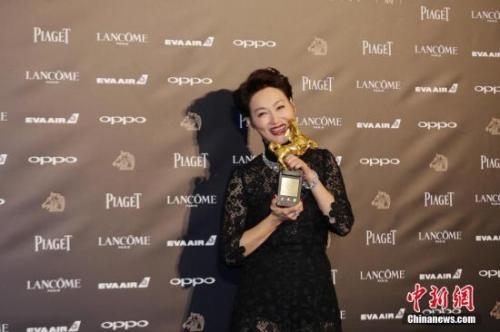 資料圖:惠英紅憑借電影《血觀音》獲得第54屆金馬獎(jiǎng)最佳女主角獎(jiǎng)。中新社記者 楊程晨 攝