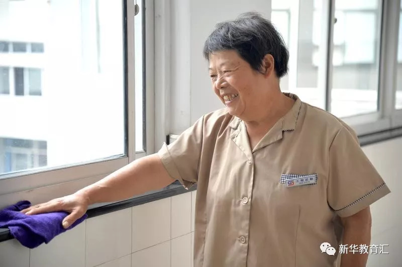今年65歲的劉彩英阿姨已經(jīng)在清潔崗位上工作了11個(gè)年頭。上班時(shí),她拿著大排拖把拖走廊,教室一下課或者活動(dòng)一結(jié)束后,立刻檢查,然后掃地、拖地,工作按部就班,該打掃的區(qū)域認(rèn)真打掃,看到其他工友需要幫忙,經(jīng)常搭把手。她笑著說,自己工作掙錢,花自己的錢踏實(shí)。如果拿別人的錢,肯定良心不安。是到了享福的年齡,但自己掙錢自己花,活得舒心,每年還能給孫子壓歲錢呢!吃這碗飯,就要弄得好,對得起別人給的工資......