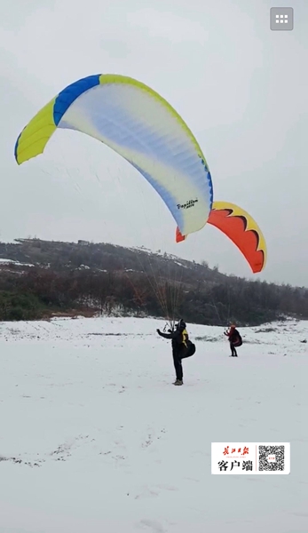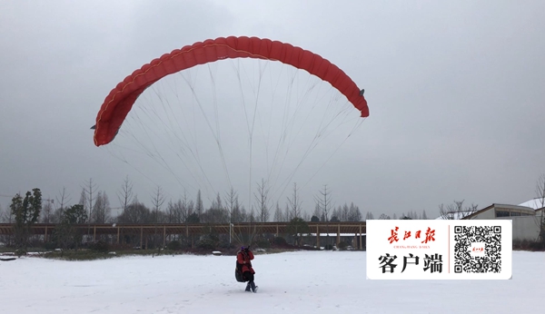 元旦小長假正逢冰凍雨雪天氣,賞雪、玩雪,成為武漢元旦小長假旅游首選。1月1日,位于花山的云旗航空運動基地一上午迎來游客近300人。雪尚未融化,游客們乘坐滑翔傘、熱氣球,飛上藍天觀看茫茫雪景,最小的游客是一名年僅10歲的小學生,他大呼“太有意思了。”據云旗航空運動基地負責人謝意介紹,2018年12月30日,趁著雪花紛飛,滑翔傘愛好者和游客紛紛來到基地,體驗在雪中飛上藍天的感覺。在基地的草地上,大小游客還自帶滑雪用具來玩雪。元旦小長假三天,前往云旗航空運動基地的游客有上萬人,其中近2000人飛上藍天看雪景。