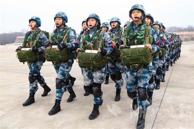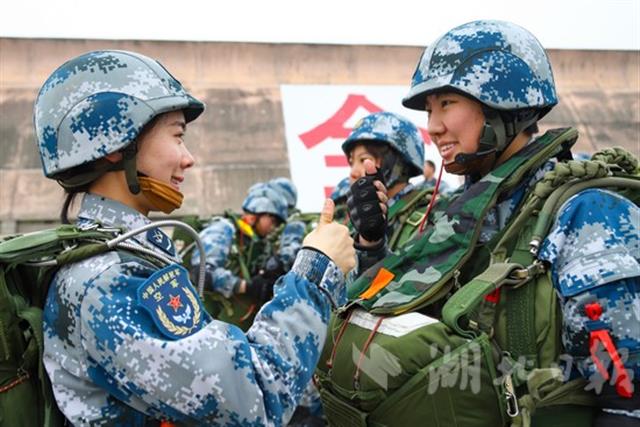 “你們是誰?空降女兵!你們是誰?勇敢的女兵!你們準備好了沒有?時刻準備著!”登機前,新訓女兵高呼口號,士氣高昂。新兵連指導員張旭森介紹,新訓女兵入伍三個多月來,先后完成了隊列、戰術、射擊等多個課目訓練,完成此次大飛機跳傘訓練后,她們將真正實現從地方女青年向合格空降女兵的蛻變,成長為綻放藍天的“雷霆玫瑰”。