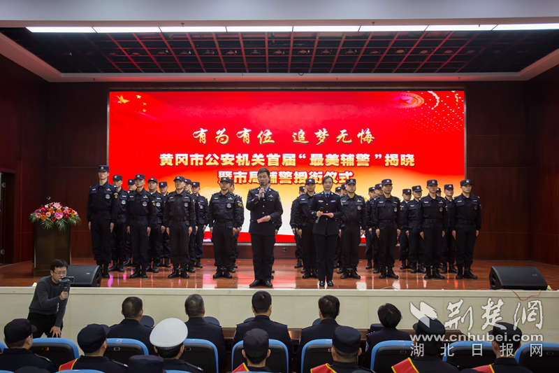 2月28號,黃岡公安首屆“最美輔警”揭曉暨輔警授銜儀式隆重舉行。通訊員供圖