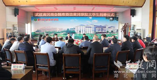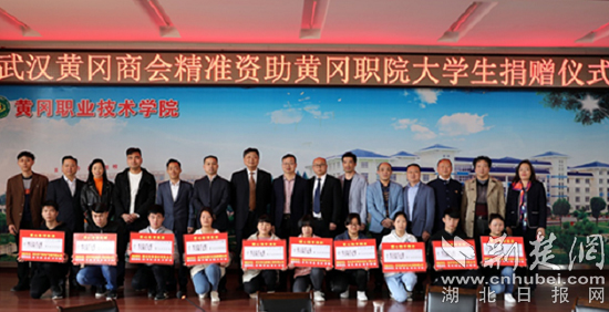 荊楚網客戶端—荊楚網消息(通信員楊晨程)3月19日上午,武漢黃岡商會愛心企業家精準幫扶黃岡職業技術學院大學生捐贈儀式,在凝智樓中心會議室隆重舉行。武漢黃岡商會常務副會長、黨支部書記、武漢雙元基礎工程有限公司董事長王中海,常務副會長、機關工會主席、湖北好有味餐飲管理有限公司黨支部書記、董事長陳常青等10位愛心企業家,黃岡楚商聯合會代表蒞臨黃岡職業技術學院。