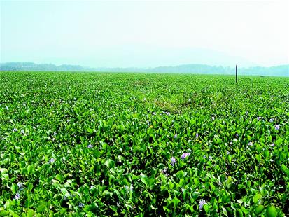 圖為:當(dāng)年白蓮河水庫(kù)水葫蘆密布,曾被戲稱為“白蓮河大草原”。(視界網(wǎng)潘金雄馮美蘭攝)