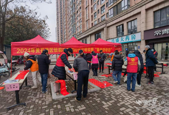 荊楚網(湖北日報網)訊(通訊員 周芳)1月21日,黃石港區鎖前社區黨委聯合愛心滿園義工協會,開展“迎春送福寫春聯 翰墨飄香倡廉潔”送春聯活動,將節前廉政提醒與節日傳統文化習俗相結合,為清廉村居建設營造濃厚社會氛圍。