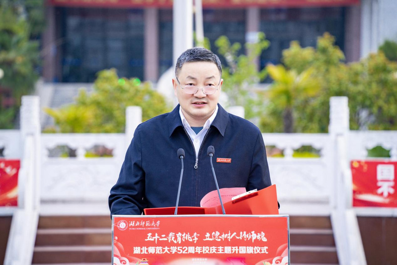 雷儒金在講話中回顧了學校52年的發展歷程,代表學校黨委、行政向全體師生、海內外校友以及關心學校事業發展的各級領導、社會各界朋友表示問候和感謝。他指出,學校當前正錨定“爭博點、強特色、創一流、促轉型”發展任務,需要全體師生接續奮斗!他強調,全體教師要以德立身、以愛育人,爭做“四有”好老師的表率,勇挑科研重擔,在學科建設、成果轉化中彰顯湖師智慧,讓“師范”品牌在新時代綻放更耀眼的光芒;全體同學要志存高遠、腳踏實地,爭做堪當大任的時代新人,用實際行動證明,新時代的湖師青年能擔重任、創佳績;希望廣大校友常回家看看,爭做學校發展的堅強后盾,把個人成長與母校發展緊緊相連。