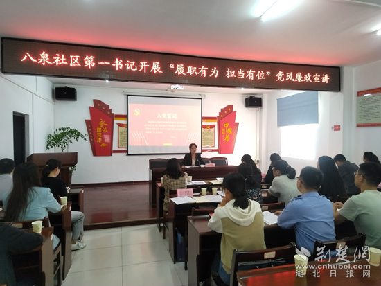 荊楚網(湖北日報網)訊(通訊員 劉傳敏)10月26日上午,黃石市西塞山區八泉社區黨委開展了“深入開展主題教育,立足崗位作貢獻”主題黨日活動。黃石市衛生健康委員會綜合監督執法局黨委書記、局長、八泉社區“第一書記”萬潔參加活動。