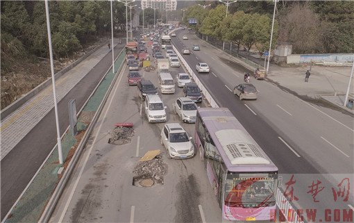 從陳家灣至天虹方向,由于當天施工井蓋并不多,大部分路段都比較暢通。不過,在桂花路路口、公園路口,東楚晚報記者的車輛仍就行駛較為緩慢。