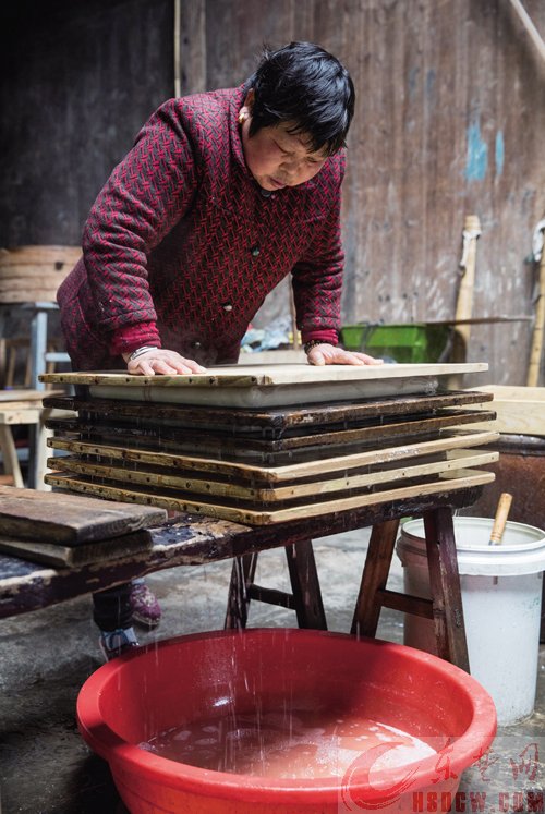 村里人做豆腐用的是深井水和自家種的黃豆,在經(jīng)過(guò)磨黃豆、揉豆沫、煮豆?jié){、壓豆腐等純手工工序后,才能做出豆腐來(lái)。做出一鍋豆腐,至少得大半天。翟桃花將豆腐切成一塊塊,然后下油鍋炸至金黃,吃起來(lái)又嫩又香,她會(huì)送一些給回家過(guò)年的孩子們,自己再留一些。