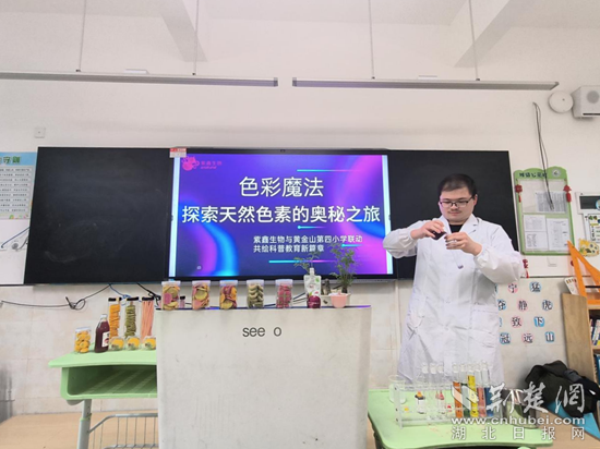 荊楚網(湖北日報網)訊(通訊員 蔣美芳)4月3日,一堂別開生面的“色彩魔法之旅”科普課程走進黃金山第四小學,帶領同學們探索天然色素的奧秘。