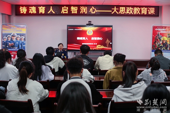 參觀結束后,黃石港區消防救援大隊教導員陳薇以《鑄魂育人 啟智潤心——大思政教育課》為題,緊緊圍繞“鑄什么樣的魂、培養什么樣的人、為誰培養人”的主題,與學生進行探討交流。
