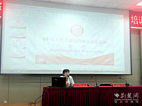 同時,會議還邀請了黃石市委辦公室行政科(檔案行政管理科)科長江旸、黃石市檔案館檔案指導科科長李雁紅為全體檔案工作者專題授課。