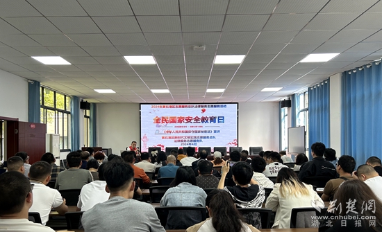 荊楚網(湖北日報網)訊(通訊員 沈吉祥)4月23日,黃石港區法律服務志愿服務隊開展國家安全知識宣講,80余居民代表參加活動。