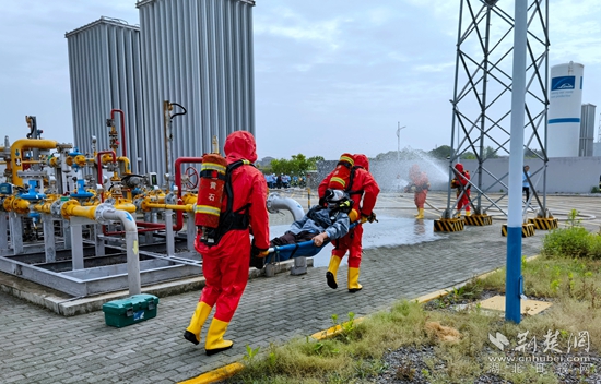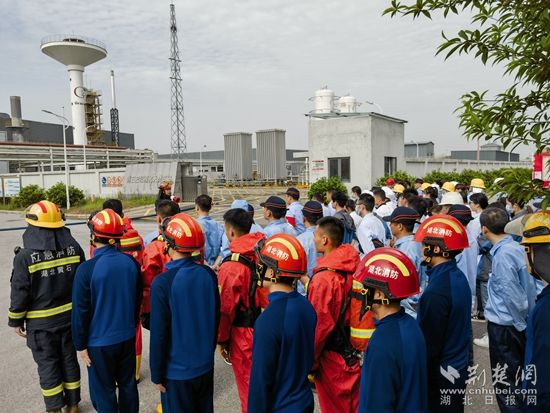 荊楚網(湖北日報網)訊(通訊員 寧靜)4月25日,開發區·鐵山區消防救援大隊在黃石宏和電子材料科技有限公司開展天然氣泄漏事故滅火救援實戰演練。