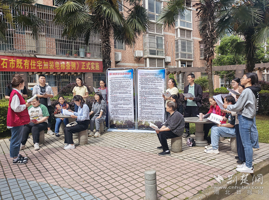 老舊小區加裝電梯,既是緊貼百姓生活的“關鍵小事”,也是增進群眾福祉的民生大事。5月21日,大碼頭社區工作人員走進陽光花城小區,開展《黃石市既有住宅加裝電梯條例》宣傳。