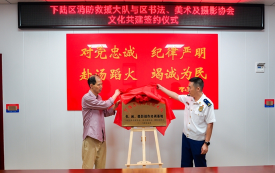 隨后,雙方簽訂了合作共建協議。根據協議,區文聯會為大隊講授文化藝術課,教授書法、美術、攝影等方面專業文藝技術技能,引導消防救援人員學習了解文化藝術,激發文化藝術學習興趣。消防大隊定期為區文聯開展火災防控知識講座、消防體驗等活動,幫助區文聯提升火災防控能力,提高消防安全意識和逃生自救能力。