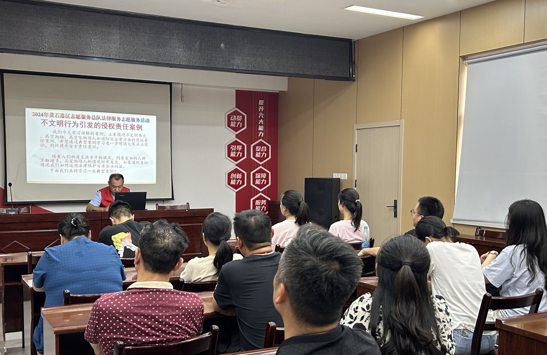 此次活動(dòng),志愿者以文明行為為切口,圍繞宣傳《黃石市文明行為促進(jìn)條例》、不文明行為引發(fā)的侵權(quán)責(zé)任案例、民法典關(guān)于侵權(quán)責(zé)任相關(guān)法律條款等三個(gè)方面進(jìn)行解讀。