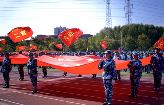 伴隨著振奮人心的進行曲,分列式表演正式開始。行進、正步、敬禮,各隊伍喊著響亮的口號,高舉鮮紅的旗幟,神采奕奕、昂首闊步地走過主席臺。