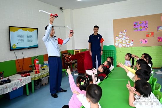 “小朋友,你們知不知道發生火災應該怎么做呢?”“知道火警電話是多少嗎?”課上,為了讓小朋友們能夠快速掌握、了解必要的消防知識,并調動學習消防知識的熱情,消防宣傳員改變了以往“我講你聽”的傳統授課方式,采取“有獎問答”的互動形式,了解小朋友們對消防知識的掌握度,用通俗易懂的語言為師生們詳細講解了火災的危害性、發生火災如何報警、火場逃生等消防基礎常識,教會小朋友們認識日常生活中的消防器材。