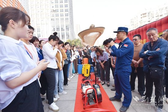 活動現場,除了進行大型演練環節外,針對居民用火用電及電動自行車日常使用的實際情況,黃石港區消防救援大隊還設置消防互動體驗區,為參加活動人員和過往群眾提供煙火流動實驗、消防裝備器材展示、油池滅火演練等精彩內容。針對群眾提出的消防難題,消防人員一一耐心解答,并提醒居民在生活中注意自檢自查,嚴禁電動自行車違規停放、充電,養成良好的安全習慣。