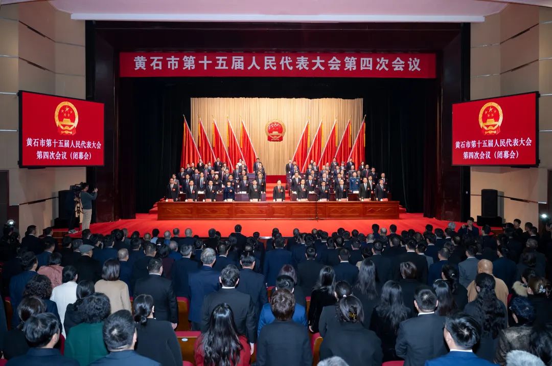 2月9日下午,黃石市十五屆人大四次會議圓滿完成各項議程,在磁湖劇院閉幕。