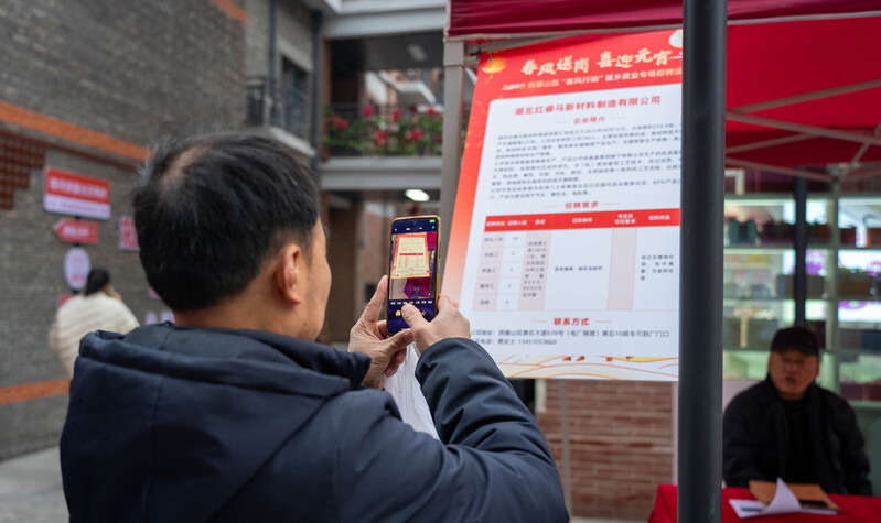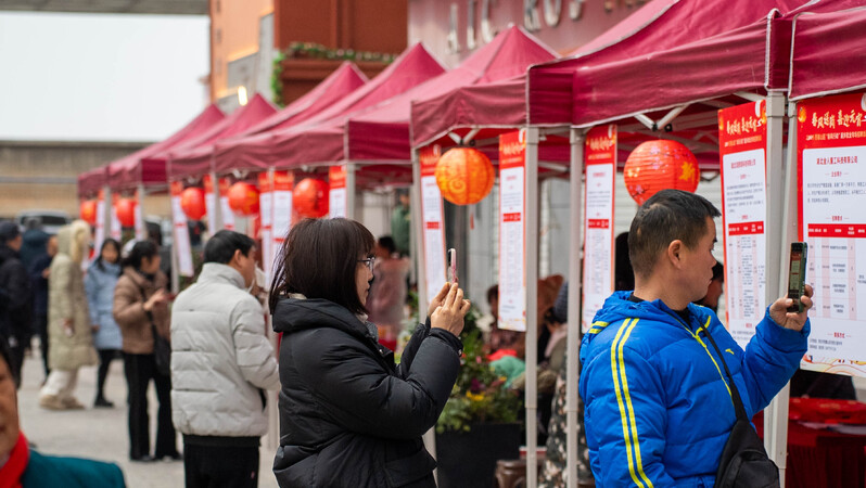 2月11日,2025年西塞山區(qū)“春風行動”返鄉(xiāng)就業(yè)專場招聘會在東楚“上窯記憶”商業(yè)街熱鬧開場。轄區(qū)30多家重點企業(yè)攜眾多優(yōu)質崗位亮相,吸引大量求職者前來應聘,參加西塞山區(qū)2025年大學生求職訓練營的大學生現(xiàn)場積極填寫應聘簡歷。