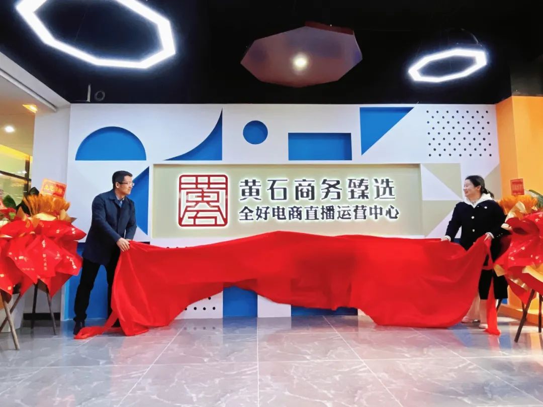 3月6日上午,黃石商務臻選·全好電商直播運營中心在黃石臨空跨境電商產業園正式揭牌成立。