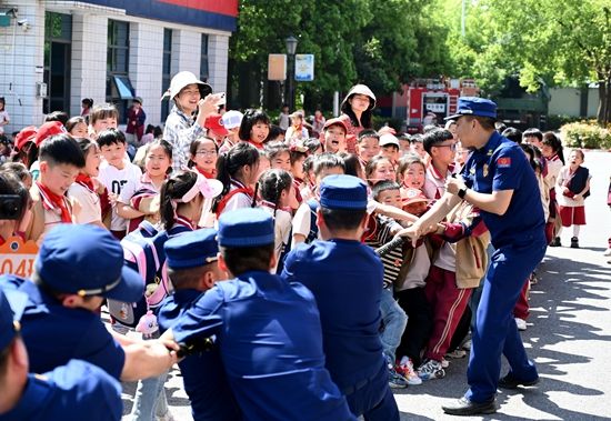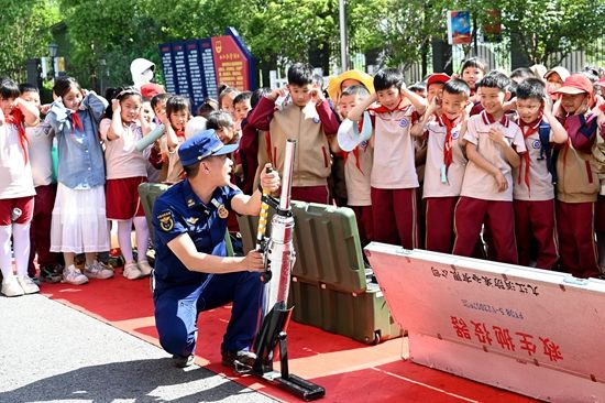 隨后,消防員進行了精彩的消防技能演示,精湛的技藝和敏捷的身手讓孩子們驚嘆不已,現場掌聲和歡呼聲此起彼伏。不少同學還在消防員的指導下,親身體驗了穿戴消防戰斗服,真切感受到消防員出警時的責任。
