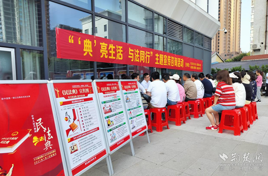 荊楚網(湖北日報網)訊(通訊員 沈吉祥)今年5月是第五個“民法典宣傳月”。5月9日上午,黃石港區司法局聯合區檢察院、區法院、花湖街道、湖北易圣律師事務所、湖北忠三(黃石)律師事務所,開展“‘典’亮生活 與法同行”主題集中宣傳咨詢活動。