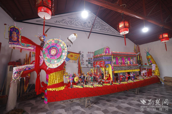 “來西塞山看神舟會咯!”隨著清脆的銅鑼響徹道士洑村,非遺傳承人身著傳統(tǒng)服飾,高聲吆喝起來。話音未落,神舟宮朱紅大門緩緩開啟,一場承載著祈福安康的神舟巡游正式拉開帷幕。