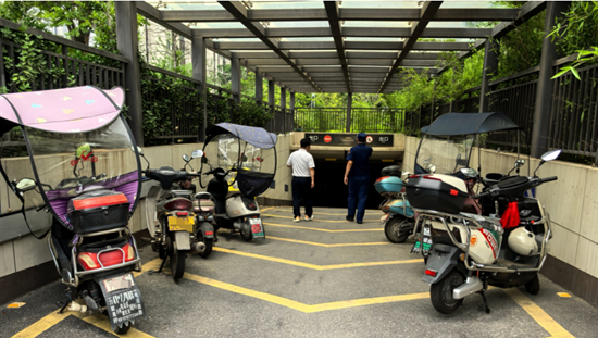 今年6月底,黃石市鐵山區消防救援大隊消防監督員在轄區大棋路一小區檢查時,發現該小區地下車庫的出口通道,被出口兩側一字排開停放的電動自行車占據,出口正中央還被兩個大石球堵住,其出口儼然成了一個停車棚。而當消防監督員進入地下車庫后發現,出口疏散通道的中央竟設置了幾根鐵樁,將疏散通道堵住,車輛無法通行,行人也得側身繞路。