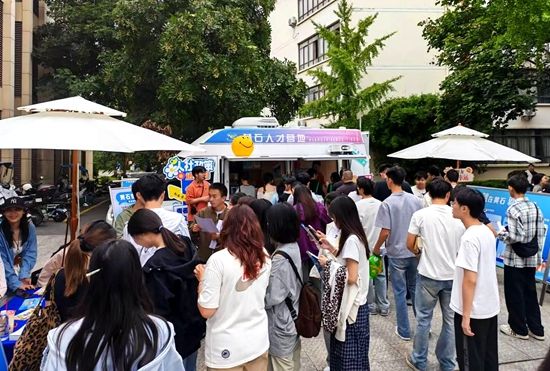 以人才營(yíng)地為核心,現(xiàn)場(chǎng)還開設(shè)了提供政策推介、招聘支持和交流互動(dòng)等服務(wù)。在政策宣傳區(qū),政策志愿者為同學(xué)們推介我市高校畢業(yè)生就業(yè)創(chuàng)業(yè)等人社領(lǐng)域政策,并提供免費(fèi)打印簡(jiǎn)歷、貼心的風(fēng)味飲品等暖心服務(wù)。在人才營(yíng)地互動(dòng)區(qū),志愿者組織同學(xué)們參與互動(dòng)游戲,并提供精美禮品,在互動(dòng)游戲問答中,通過關(guān)于黃石政策、美食與景點(diǎn)等互動(dòng)內(nèi)容,在輕松氛圍中感受黃石城市發(fā)展魅力。