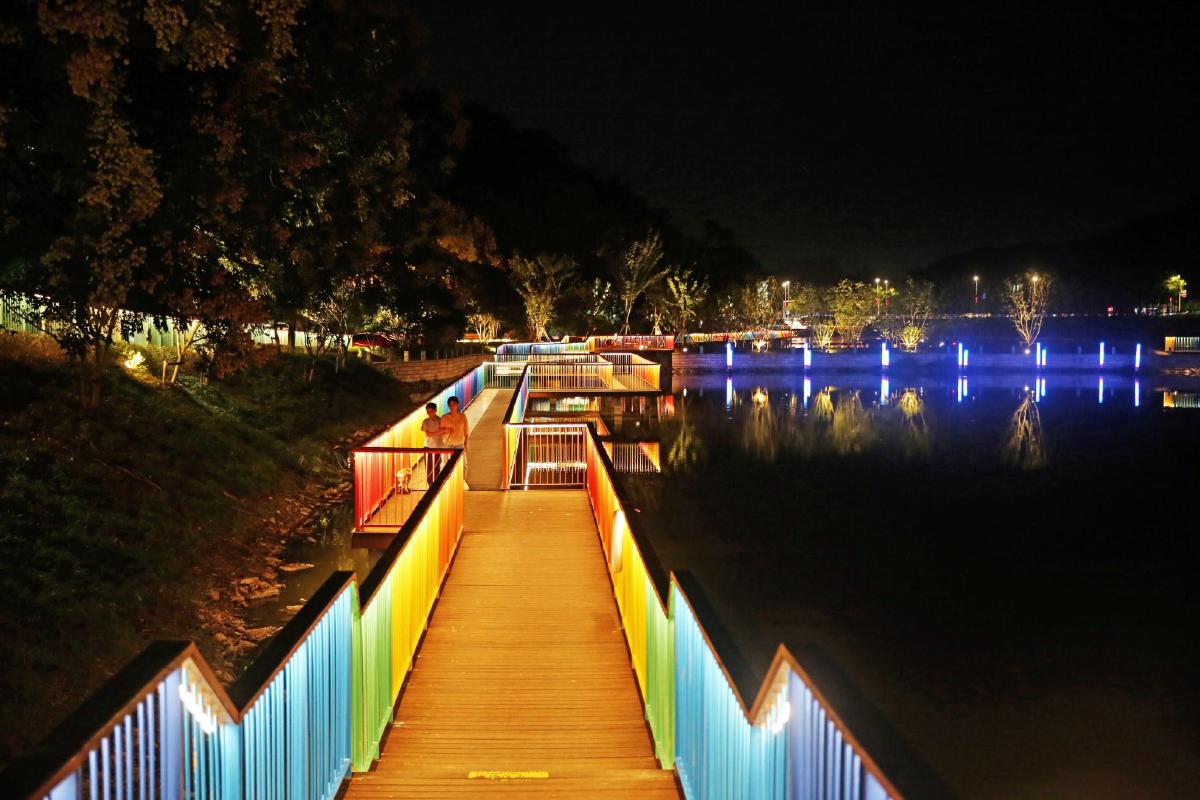 特別是夜晚霓虹燈帶如璀璨銀河,將湖面上的木質(zhì)棧道鍍上粼粼波光,茂密的古樹在晚風(fēng)中搖曳,與天際疏星遙相呼應(yīng),美不勝收。