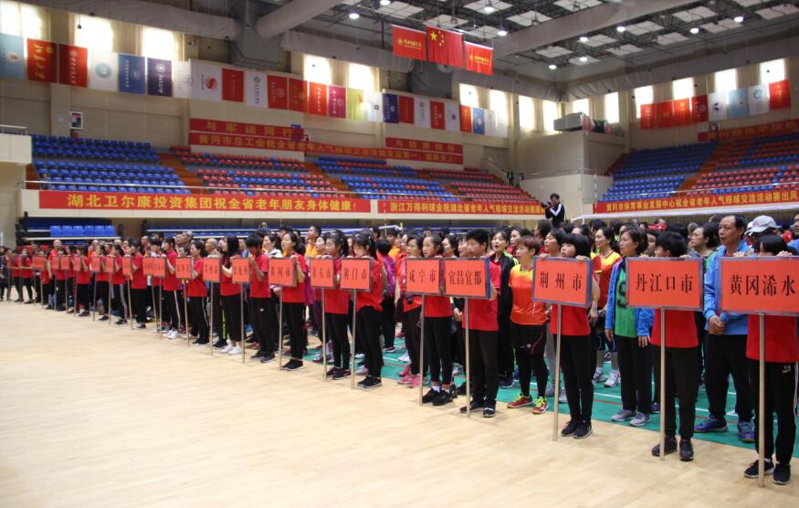 4月18號上午,第二屆湖北省“福壽康寧”老年人體育健身系列賽事(活動)——氣排球交流活動開幕式在黃岡師范學院體育館進行。來自全省各地的40支代表隊,共463人將展開一場別開生面的賽事。