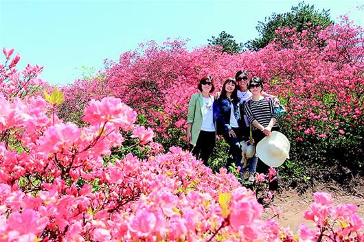 圖為:羅田黃獅寨五彩杜鵑面積近3000畝,花開(kāi)遍地吸引各地游客絡(luò)繹不絕。(視界網(wǎng)周中平劉世民攝)