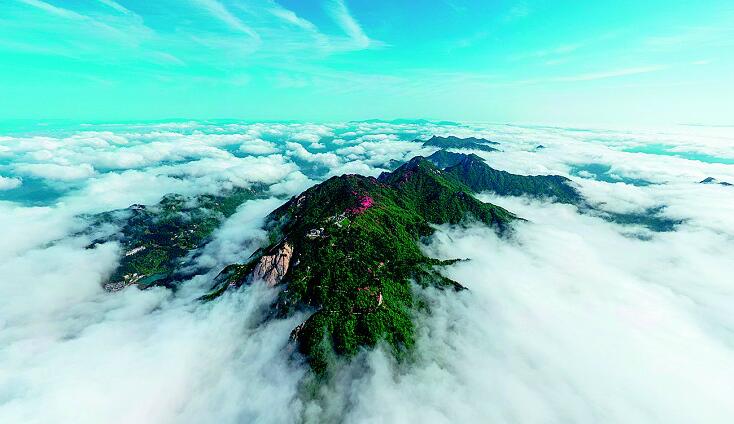 圖為:5月11日,黃岡大別山世界地質(zhì)公園揭牌。公園由龜峰山園區(qū)、大別山主峰園區(qū)組成。圖為4月30日云海環(huán)繞的龜峰山園區(qū)。 (湖北日報全媒記者 陳勇 通訊員 夏鋒 攝)