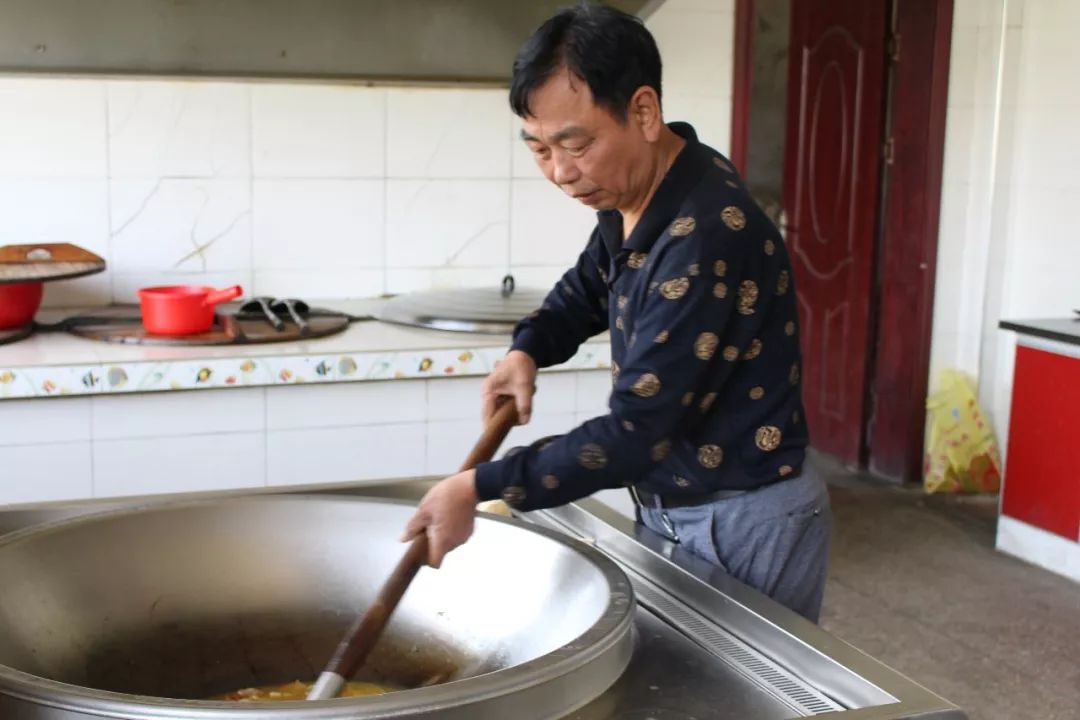 食堂寬敞明亮、干凈整潔,就餐區域與飯菜操作間分開設置。“今天中午的主菜,蒜頭煮臘肉,現在中午餐餐都有肉!”一進入操作間,段漢青便拿起大鍋鏟,添起中午準備好的飯菜,滿臉自豪地介紹道。