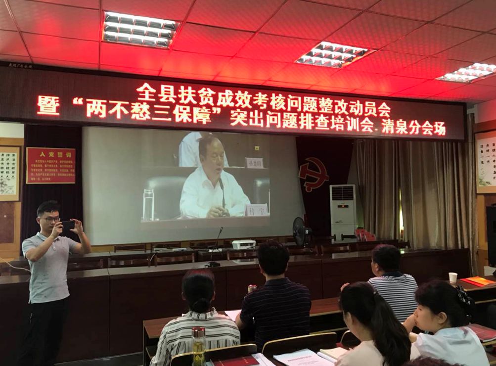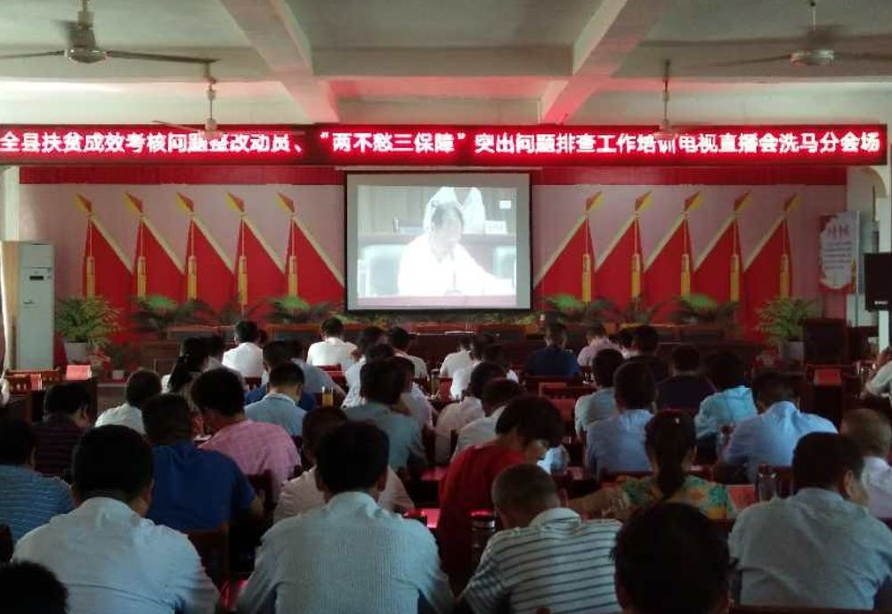 6月11日,浠水縣召開全縣扶貧成效考核整改暨“兩不愁三保障”突出問題排查動員會,會議采取電視直播的形式,設縣級主會場、鄉鎮(區、處)分會場、村(社區)分會場。