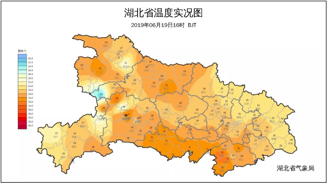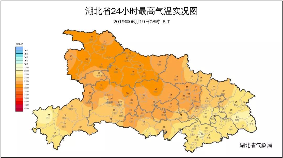 下午16時(shí)咸寧、荊州等地氣溫在30℃以上