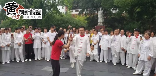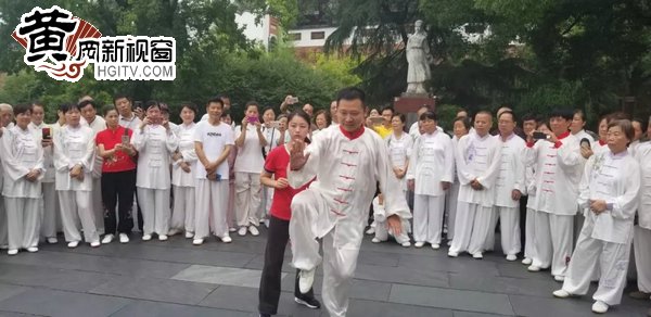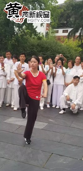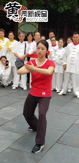 早上7時,邱慧芳首先觀看了黃岡赤壁公園太極拳隊的演練,并進行了指導,回答了拳友的相關問題,最后進行了精彩的太極拳表演。