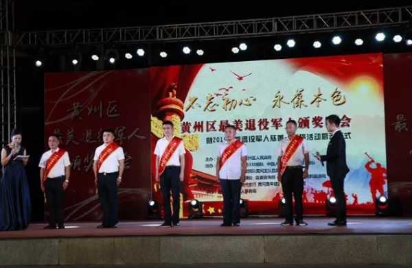 8月30日晚,由中共黃州區委、黃州區人民政府主辦,黃州區退役軍人事務局承辦的“不忘初心 永葆本色”黃州區最美退役軍人頒獎晚會暨關愛退役軍人“慈善一起捐”啟動儀式在遺愛湖公園舉辦。市、區領導駱志勇、朱冬明、胡凱、尤金明、鐘志強、王立三、許春梅、駐黃部隊及區人武部首長出席頒獎晚會,并為最美退役軍人頒獎。