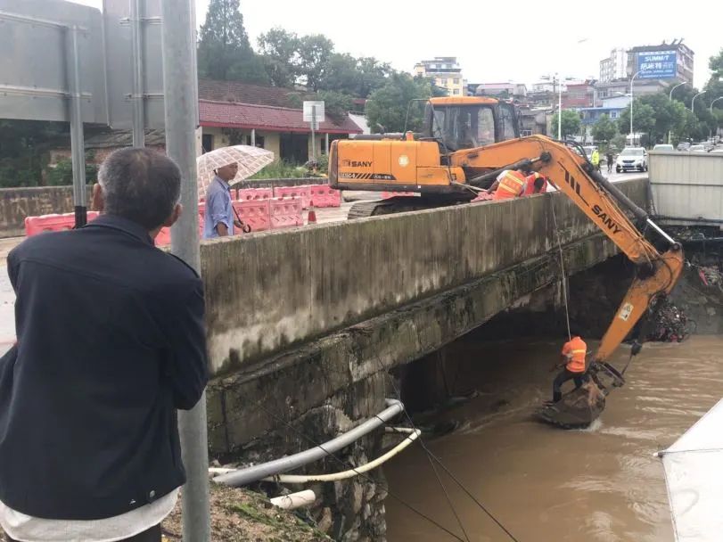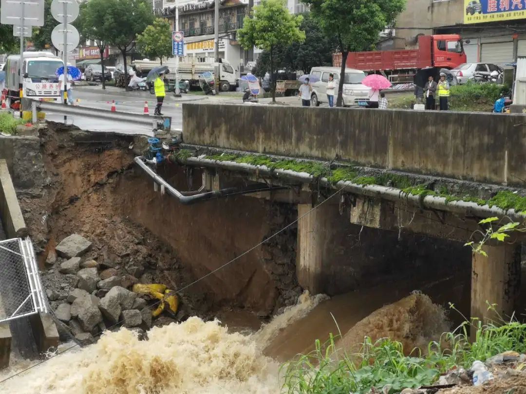 7月8日上午,浠水縣清泉鎮(zhèn)道人橋社區(qū)東升橋(老浠英路)出現(xiàn)脫坡險(xiǎn)情,洪水湍急、橋體變形,泊油路面塌陷,周邊群眾住房受到威脅,旁邊的河?xùn)|街村許多居民家中因暴雨積水達(dá)1米多深,出行生活受到嚴(yán)重影響。