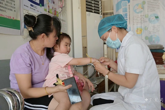 楊芬為農村留守兒童進行扎針輸液治療。通訊員 供圖