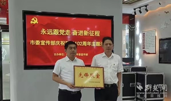 麻城市委常委、宣傳部長羅俊為先鋒股室授牌。通訊員 供圖